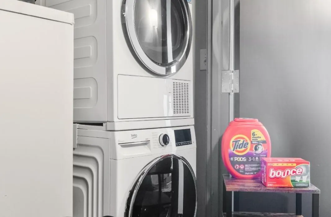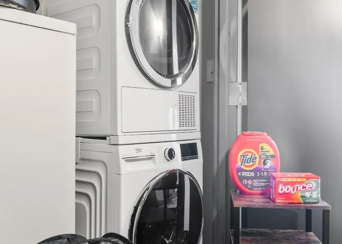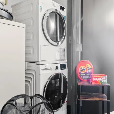 Los huéspedes del Beautiful Downtown Apartment With Pool, Laundry, Parking, tienen acceso a una cocina completa con un lavavajillas y un horno. La estación de autobuses Greyhound está justo al lado de este establecimiento. La propiedad se abre a un salón compartido.